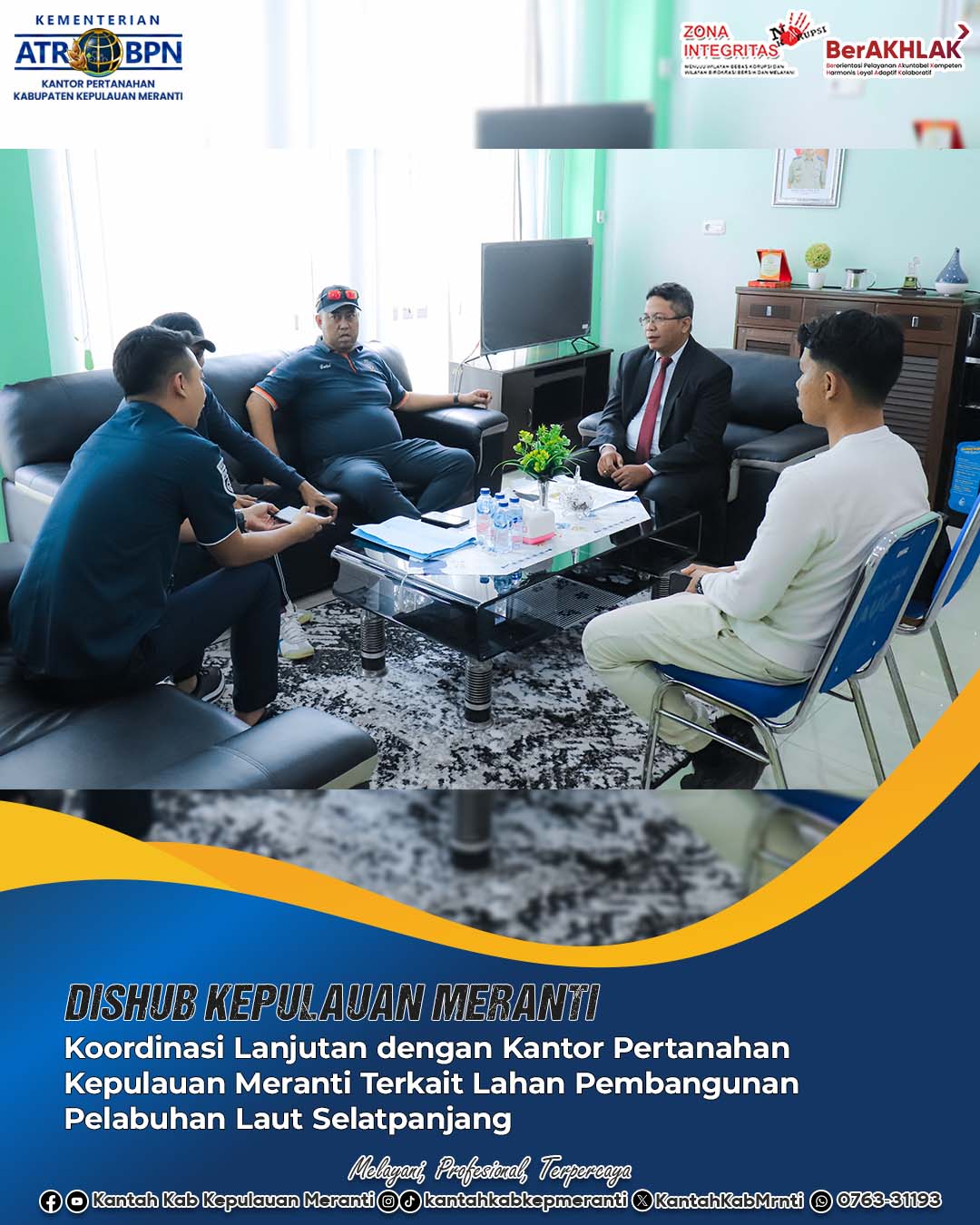 Koordinasi antara Dishub dan Kantah Meranti diharapkan dapat memperlancar proses persiapan pembangunan, sekaligus meminimalisasi potensi kendala administratif di kemudian hari.