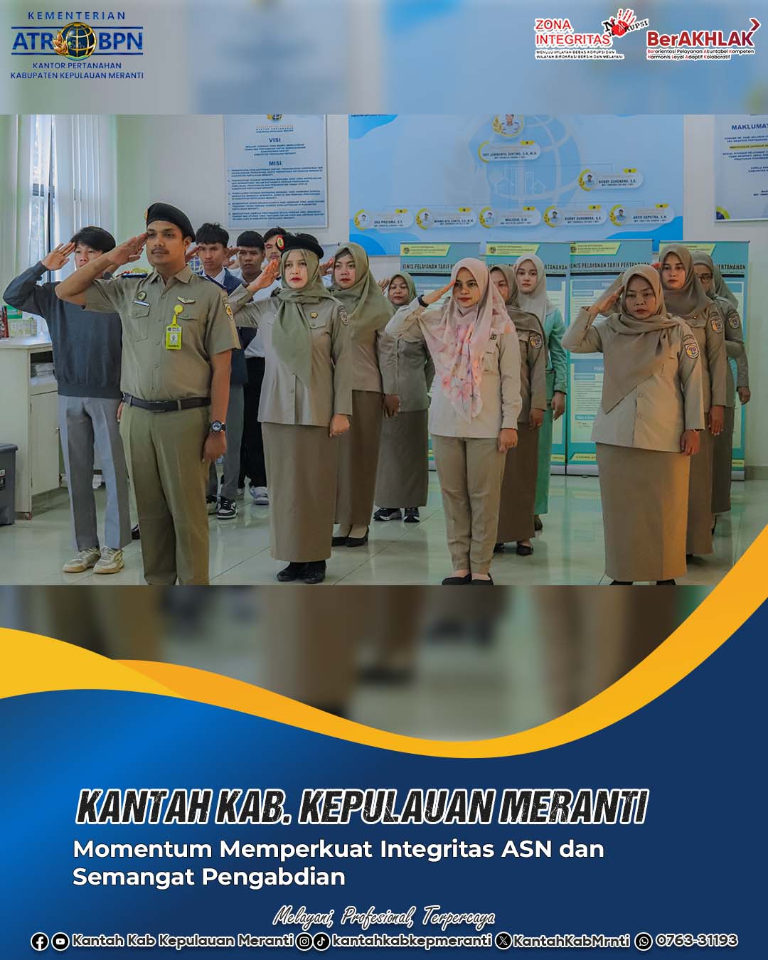 Apel pagi ditutup dengan doa dan penguatan semangat kerja menjelang akhir tahun, sejalan dengan upaya Kantor Pertanahan Kabupaten Kepulauan Meranti untuk terus meningkatkan kualitas pelayanan publik sesuai motto Kementerian ATR/BPN: Melayani, Profesional, Terpercaya.