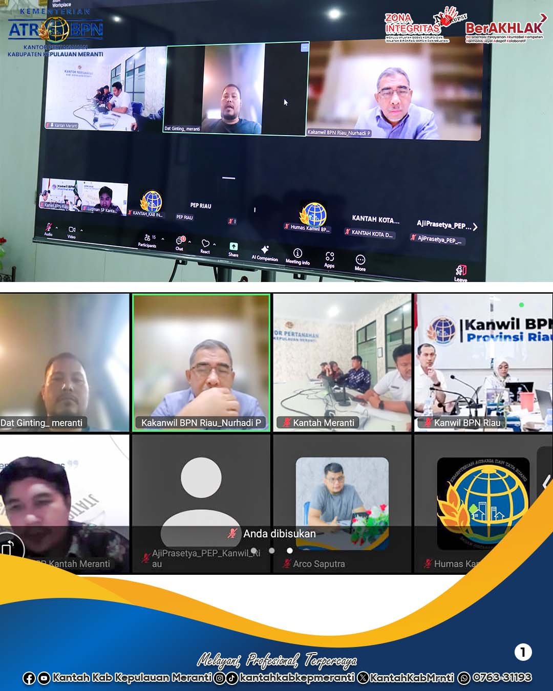 Kantor Pertanahan Kepulauan Meranti Hadiri Monitoring dan Evaluasi Capaian Anggaran Kanwil BPN Riau Tahun 2025