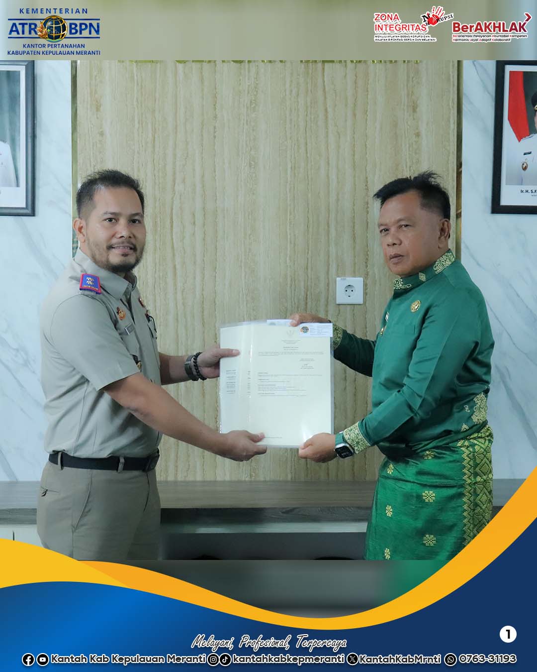Kantor Pertanahan Kepulauan Meranti Serahkan Sertipikat Aset Tanah Pemerintah Daerah kepada Bupati Kepulauan Meranti